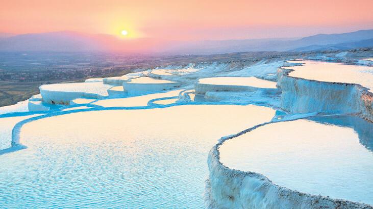 Cotton Castle of Turkey, famous for its Curative mineral-rich thermal waters flowing down white cloudy terraces remembered in this theme while you will find the color combinations of pure white, mirror, and transparent.