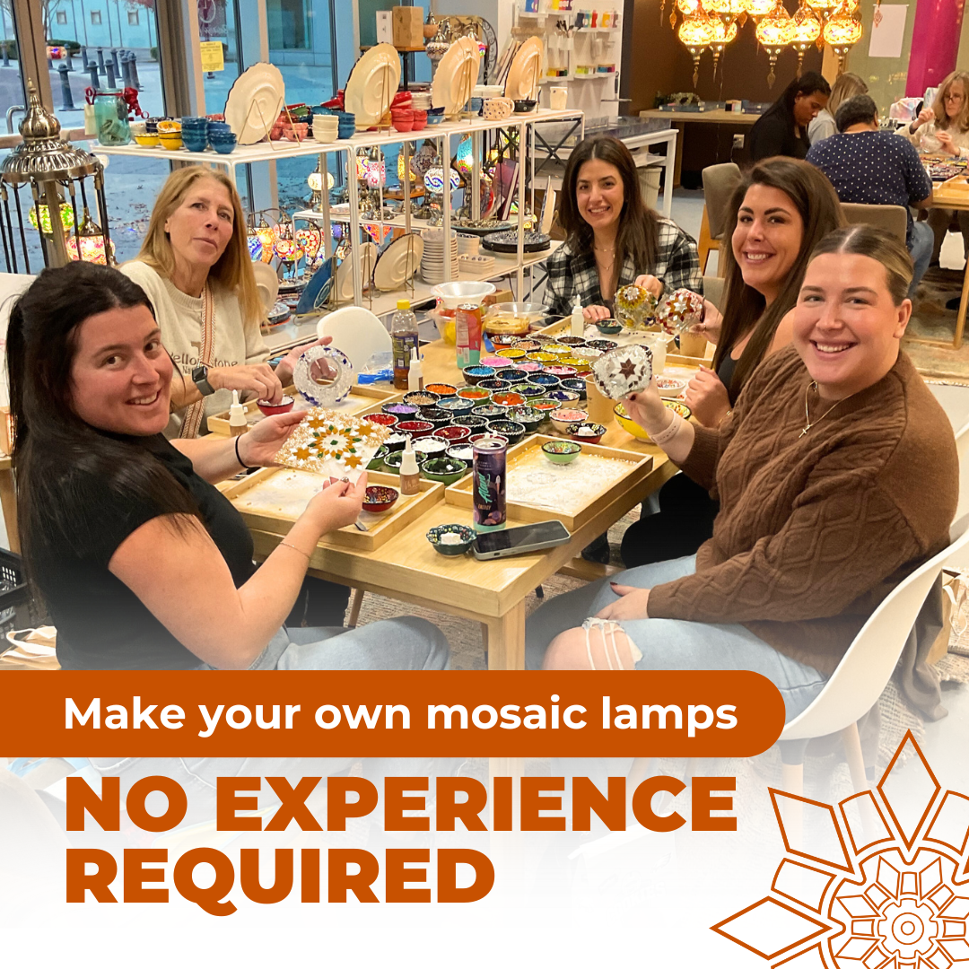 Our Date Night Mosaic Lamp Workshop is a romantic, hands-on experience designed for couples to connect, create, and take home a glowing memory made together.